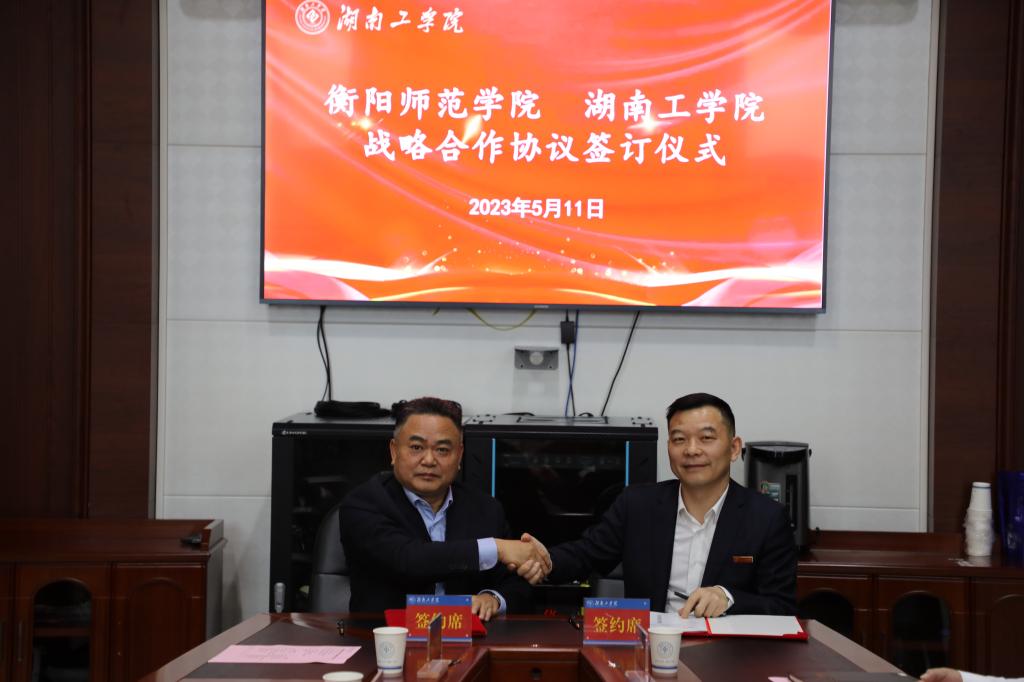 为扎实推进学习贯彻习近平新时代中国特色社会主义思想主题教育,切实将学习成果转化为推进学校高质量发展的举措,5月11日上午,best365官网与衡阳师范学院战略合作协议签订仪式在教学大楼小会议室举行。校党委书记宋克慧,校长曹执令,副校长何建雄、柳星;衡阳师范学院党委副书记、校长皮修平,副校长李玲玲、魏晓林参加签约仪式。仪式由副校长刘升学主持。