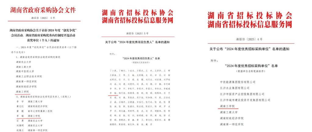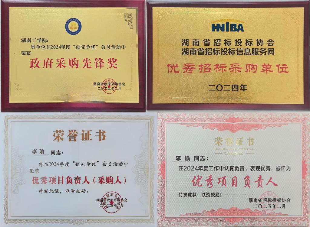 此外,best365官网招标招投标管理办公室李瑜同志同时荣获了招标投标协会“2024年度优秀项目负责人”称号和湖南省政府采购协会“2024年度优秀采购人”荣誉。