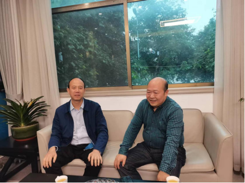 学校党委委员、副校长刘升学和水务集团党委书记、董事长郑湘山洽谈合作