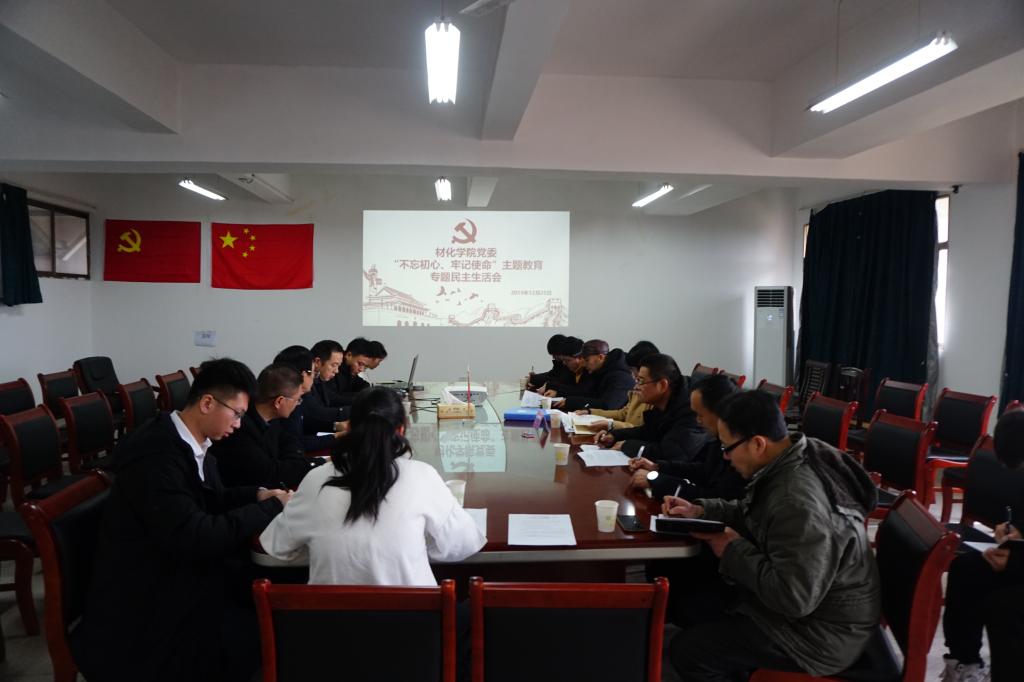 12月25日下午,根据best365唯一官方网站党委统一部署安排,材化学院党委召开了“不忘初心、牢记使命”主题教育专题民主生活会。校党委委员、副校长崔晓利到会指导。会议由材化学院党委书记刘湘欣主持,材化学院党委班子全体成员参加会议,材化学院院长胡汉祥、新型建材研究院院长李坦平、全体党支部书记列席会议。