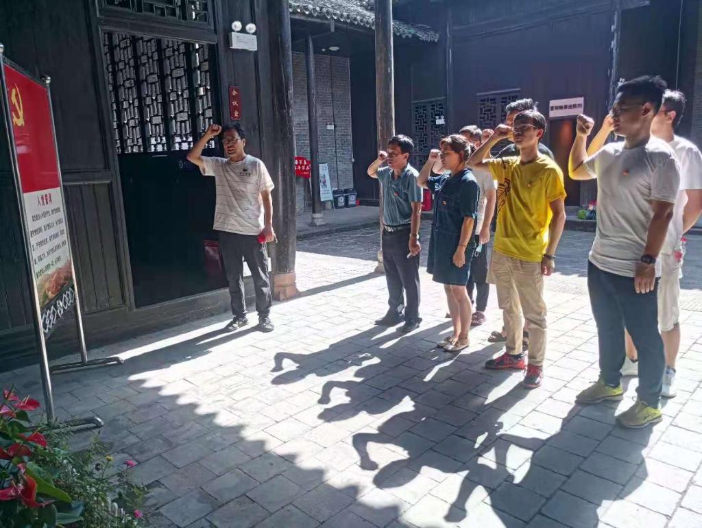 在湘南学联纪念馆党史学习教育基地的会议室,党支部书记王文革给党支部全体党员讲授了“学党史——湘南学联参观学习感悟”的党课,分享了自己的参观感悟。活动最后,党支部全体党员面朝毛主席青年雕塑,一起重温了入党誓词,时刻提醒党员同志们不忘入党初心,坚定理想信念,遵守誓言,为共产主义事业奋斗终身。