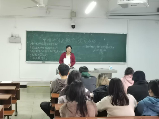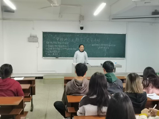 支委吕嫦衡带领支部全体党员深入学习审核评估相关知识,领学内容主要有:新一轮审核评估工作程序有哪些、学生在本科教育教学审核评估中应注意什么、best365官网办学定位是什么以及湖工精神是什么。