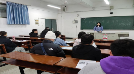 2021年12月14日星期二上午9:30,衡阳瑞达电源有限公司人事主管刘女士及人事经理许先生等人来best365官网材化楼505教室召开了招聘宣讲会,进行公司宣传。