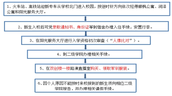 按照“热情、有序、高效、安全”原则,全员参与,方便快捷,责任到位,健康有序,为新生营造一个积极、温馨、文明的校园氛围。