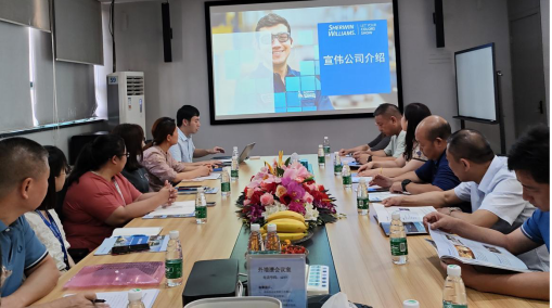 刘升学一行在美涂士和华润涂料考察座谈