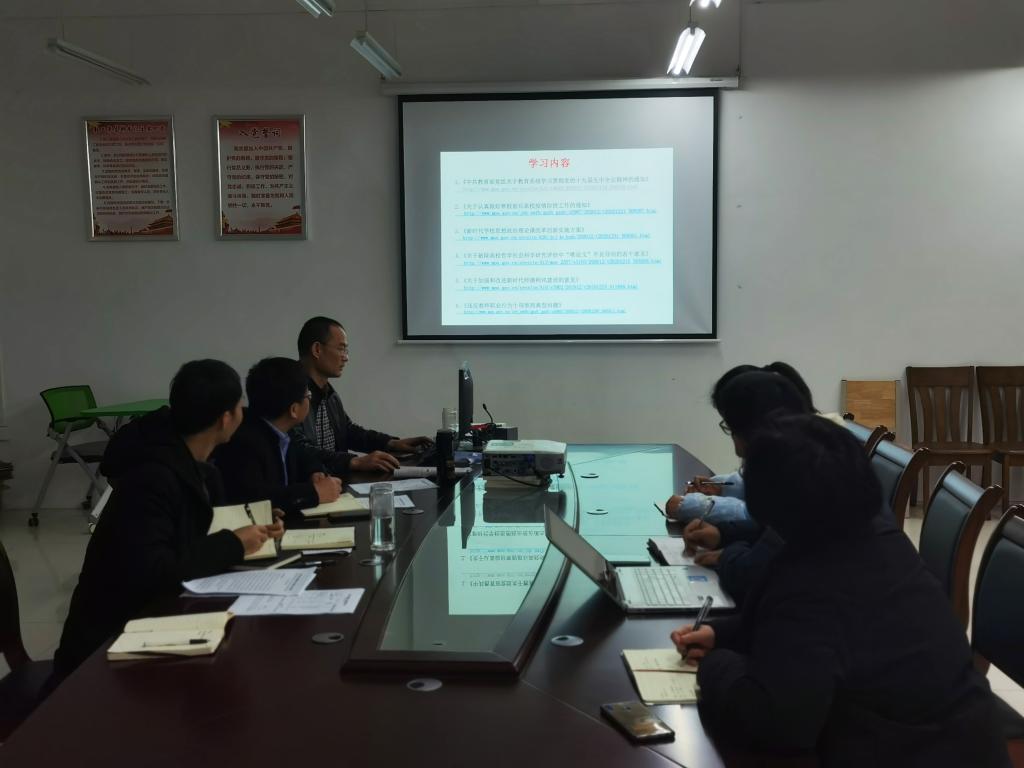 学院全体人员认真学习了《中共教育部党组关于教育系统学习贯彻党的十九届五中全会精神的通知》、《关于认真做好寒假前后高校疫情防控工作的通知》、《新时代学校思想政治理论课改革创新实施方案》、《关于破除高校哲学社会科学研究评价中