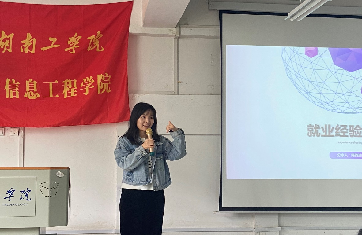 为提高同学们对就业及创业的认识,树立正确的择业心态, 激发创业热情,电信学院于4日24日上午在电信楼3312教室举办就业、创业经验分享会。电信学院党委副书记李治军、贾雅琼博士、辅导员老师魏伊楚莅临指导,学院邀请2010级优秀校友刘杨(深圳市盈阳科技有限公司技术总监)、陈韵迪(中国移动通信集团湖南有限公司湘潭分公司通信工程师)担任分享嘉宾,面对面为学弟学妹们传授自己的宝贵经验。