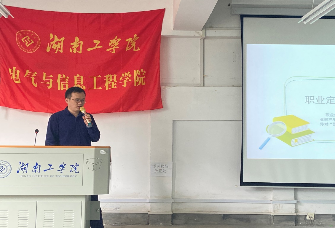校友刘扬首先结合自身三年的创业经历,在“认识自我”、“环境分析”、“职业定位”、“执行计划”四个方面分享了自己的经验和看法,随后详细介绍了国内外芯片发展现状并结合毕业生就业市场情况,为同学们分析了未来就业方向以及创业目标。