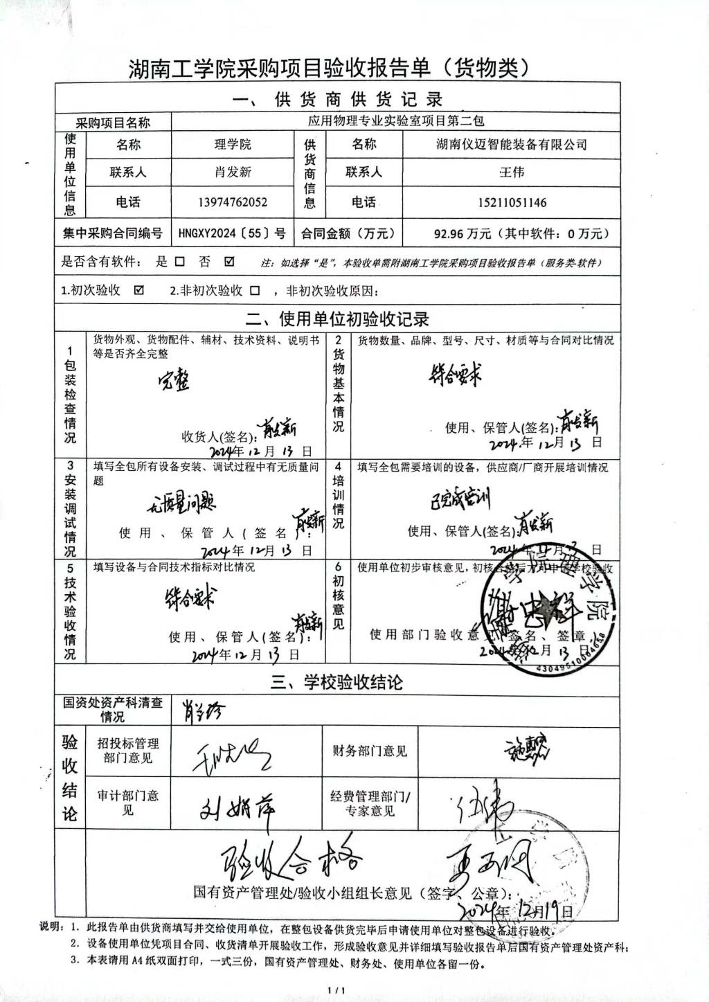 根据国有资产管理处对采购项目的验收安排,2024年12月18日国有资产管理处组织招投标管理与服务中心、审计处、财务处、教务处以及使用部门代表对供应商的项目进行现场验收。