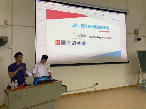 沈应龙总监结合了设计基本理论及个人实战经历,例举大量设计公司实际项目及工作作品,为同学们展示了一个优秀的设计方案的形成过程。并通过犀牛、Grasshopper、MS、C4D等计算机辅助软件的现场演示,展现设计方案高效可视化表达的方法及重要性。沈总监的讲解深入浅出,趣味性强,激发了同学们提高设计表现能力的热情。讲座最后,沈总监与在座师生进行交流总结,深入探讨,形成了互相激励的良好局面。