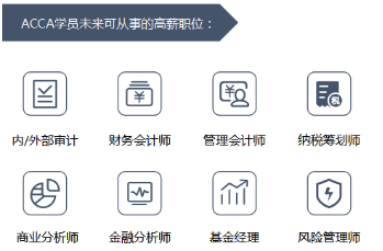 ACCA会员和学员拥有广阔的就业前景。会员薪资普遍较高,多数在银行、证券、投资机构、会计师事务所、跨国公司、大型国企担任财务总监、高级财务经理、合伙人等高级职位。
