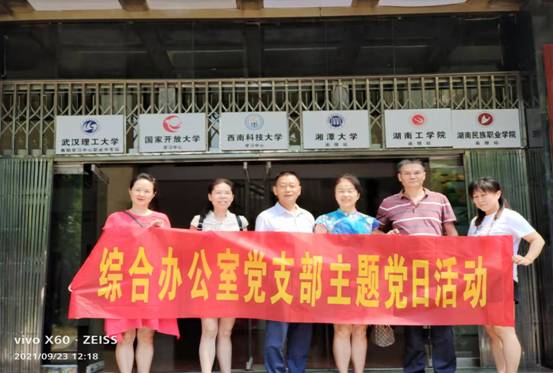 9月23日,为了贯彻落实习近平总书记“七一”重要讲话精神,坚持育人为本、坚守为民初心、注重学用结合,全面推动成人高等教育高质量发展,继续教育学院综合办公室党支部全体党员在支部书记阳兰平的带领下,走访了衡阳市职业中专、衡阳市建设学校、新起点电脑培训学校等三家函授站点,开展了主题为“新时代新起点新发展,携手共创继续教育美好未来”的党日活动,总支书记李文珊参加了此次活动。