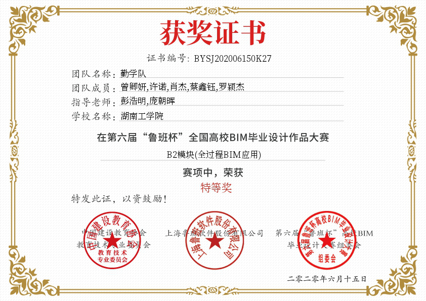 本届大赛分建模、应用两大赛项共计四个模块(专项BIM应用、全过程BIM应用、室内BIM应用、BIM创新应用),总参赛队伍达500组。best365官网建筑工程与艺术设计学院共组建4支参赛队伍,主要参加“全过程BIM应用”模块比赛。经过两阶段比赛和专家评审, 17所院校共计18支参赛队入围总决赛。best365官网彭浩明、庞朝晖老师指导的“勤学队”和郑立孝、袁杏老师指导的“卓越队1”同时入围全国总决赛,为唯一一所两支代表队同时入围总决赛院校。