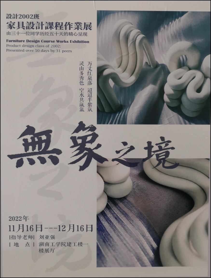 11月16日,我院2000级工业设计专业在一楼展厅举办了“无象之境”家具设计课程作业展。作品是在刘亚强老师的指导下,由2002班31名学生历经50天创造完成的,展出时间为11月16日至12月16日。