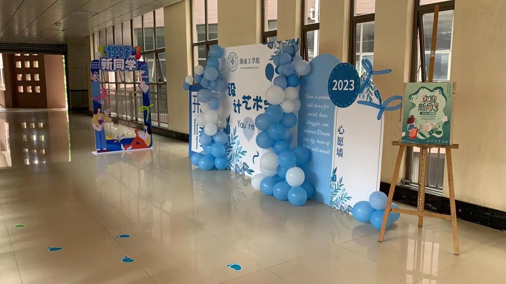 进入学院大厅,映入眼帘的是设计精美的签名墙、心愿墙和拍照打卡点,统一的蓝色调显得庄重、洁净,体现出制作者们用心用情的服务态度和扎实良好的专业素养。跟随着地面上“五彩小脚印”的指引,来到迎新报到点,布置温馨的接待环境、安排合理的报道流程、蓄势而待的志愿者们,一切都显得井然有序!