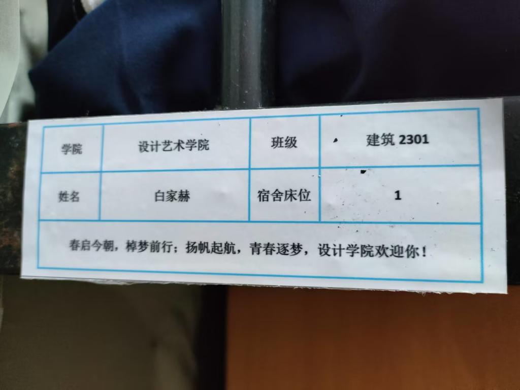 进入新生宿舍,整洁无尘,明窗净几,这是学院师生、党员干部两天的劳动成果。温馨暖人的“门贴”、“床贴”上,宿舍成员、辅导员、班主任、班助等信息一目了然,“阳光生活,快乐学习”、“春启今朝,棹梦前行;杨帆起航,青春逐梦,设计艺术学院欢迎你!”的寄语饱含着学院的殷殷期望和谆谆嘱托。宿管老师全面清查了设施设备,并统计问题,及时上报,进行了补漏补缺。刘龙昌副校长检查后深情地说到,“感觉良好,谢谢学工系统的同志们辛苦工作,希望再接再厉,把迎新工作这件大事、盛事、喜事办好!”大家闻后欢欣鼓舞,备受感动!