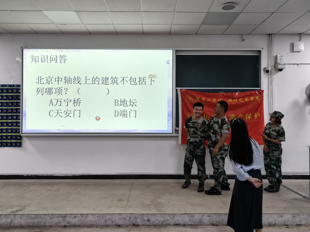 文静老师以助力北京中轴线申遗为主题,从世界文化遗产概况、北京中轴线概况、北京中轴线上的建筑成就三个方面展开详细介绍,用通俗易懂的语言,图文并茂的展示,让同学们切身感受到了中轴线的历史文化,了解和认识了中轴线的独特魅力,聚力传承中华民族的优秀传统文化的现实意义和未来发展。科普结束后,文静老师还设立了知识问答,新生们积极互动,踊跃答题,并获得了“北京地标团扇书签”、“越王勾践钥匙扣”、“如意平安钥匙扣”等文创小礼品,受到同学们的热烈欢迎。