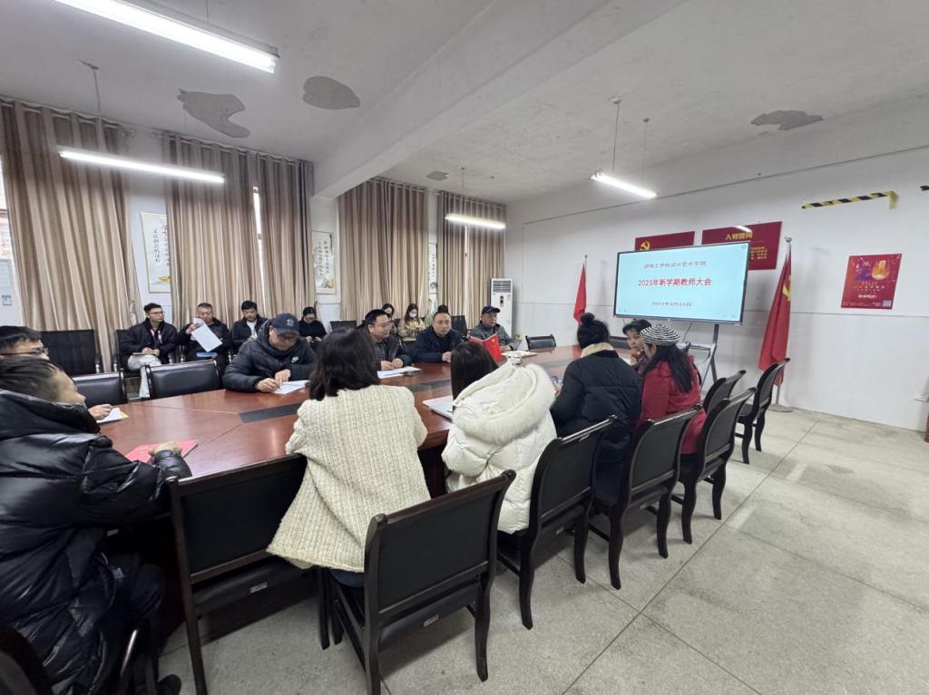 2月25日,设计艺术学院召开新学期全体教职工大会,全面部署新学期党建思政、教学科研、学科建设与学生工作。全体教职工参会,共谋学院高质量发展新篇章。