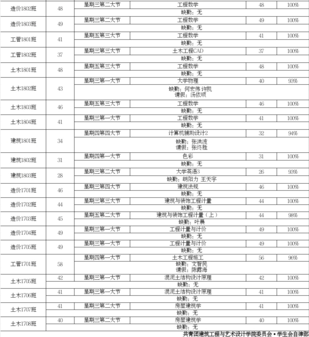 建筑工程与艺术设计学院第14周查课汇总表