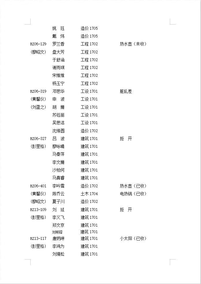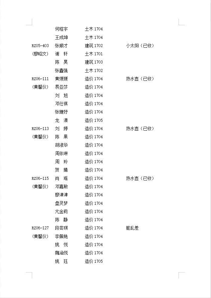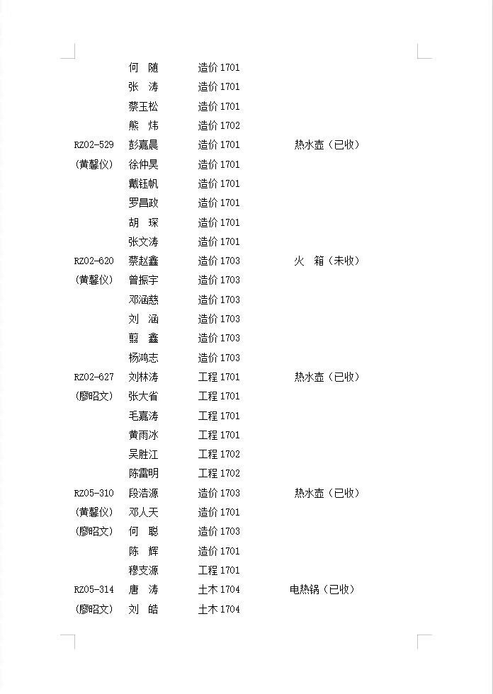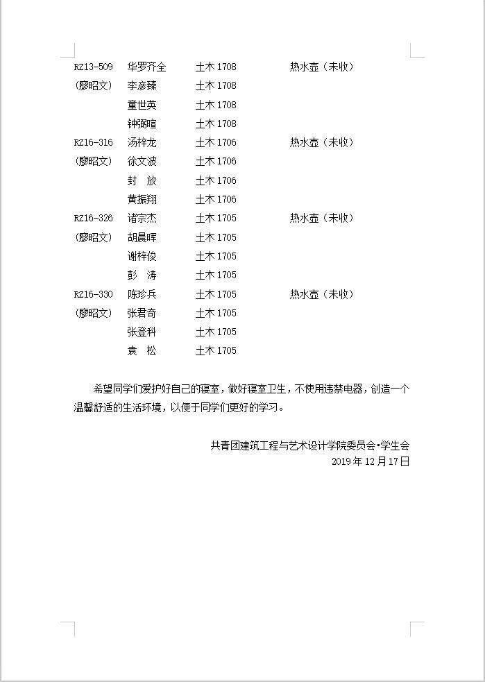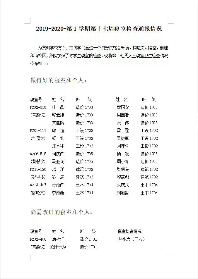 2019-2020-第1学期第十七周寝室检查通报情况