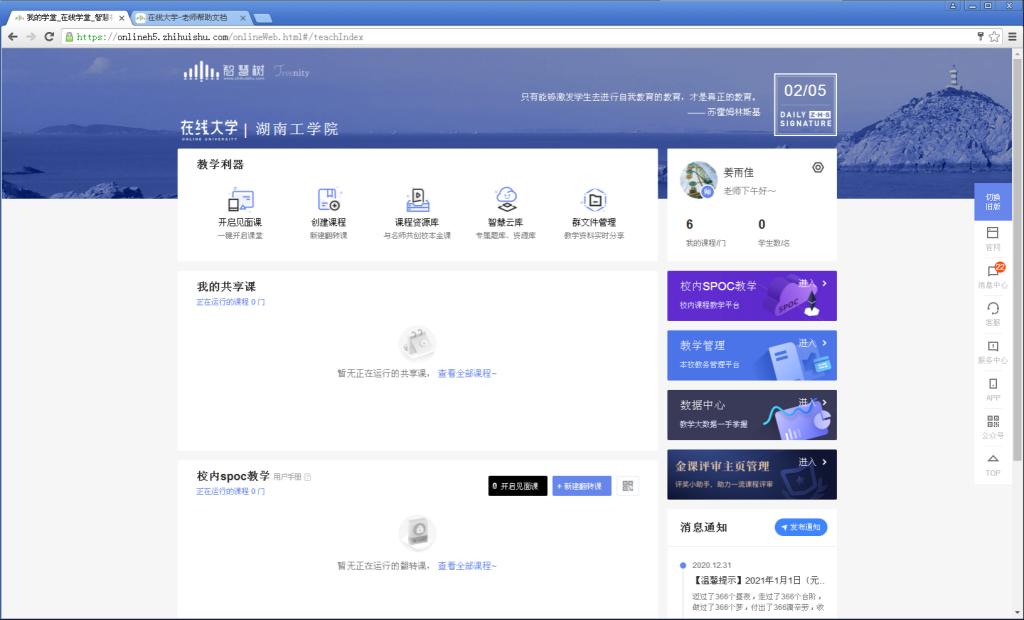 4、然后,教师可以在自己的主页面中点击“创建课程”,进行建课