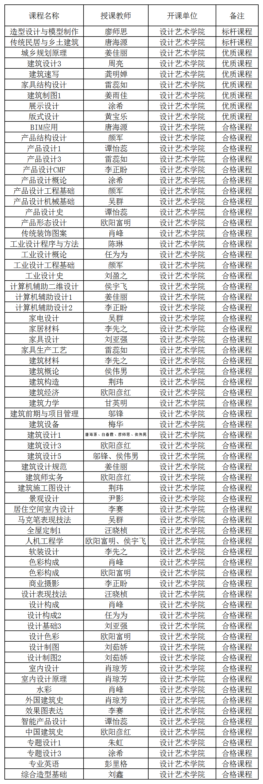 根据《best365唯一官方网站教师课程教学质量等级评定办法》、《设计艺术学院教师课程教学质量等级评定方案》,并依据教师提交的《best365唯一官方网站优质课程》申请书,经设计艺术学院教师课程教学质量评价工作小组评定,现公示2022-2023-1学期教师课程教学质量评定等级(见下表),公示3个工作日,如有异议,请将书面意见反馈至设计艺术学院教研办朱虹老师处。