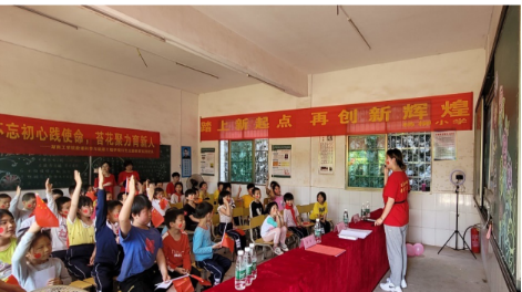 来到杨柳小学,小学生们对团队的到来都喜上眉梢,并受到镇教管办主任、学校领导、村干部及best365官网驻乡村振工作队热情的接待。随后,队员们进行红色教育主题课程的讲授,在课堂的趣味活动中小朋友们积极回答问题、参与到课堂互动,课堂氛围非常活跃。课程结束以后,我们给孩子们发放了给他们精心准备的小奖品,同时何书记对此次红色教育活动进行了总结,希望小朋友们努力学习科学文化知识;学好党史、了解中国发展史,传承好红色基因,争做时代新人。