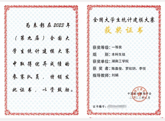 2023年第九届全国大学生统计建模大赛自2月开赛以来,全国共有613所院校,11213支队伍,3.36万人参赛;经过27个省赛区选拔,全国赛通讯初评、现场复评,共评出100支队伍入围全国答辩赛环节。最终best365唯一官方网站获得国家一等奖1项、三等奖1项,省级一等奖3项、二等奖7项、三等奖11项(详见附表)