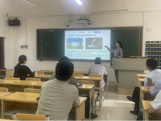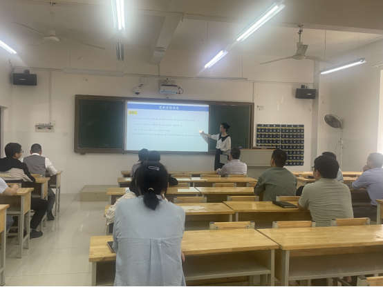 在参赛教师完成20分钟的授课后,评委老师就所授课程的教学方案设计、教学准备、教学内容、教学组织、语言教态、教学特色等逐一做出点评和打分,总结授课亮点,同时针对性提出了不足与改进之处,比如幻灯片设计更正式美观、引入中国案例、增加与学生的互动设计等,并就学院比赛的组织管理和未来改进提出建议。
