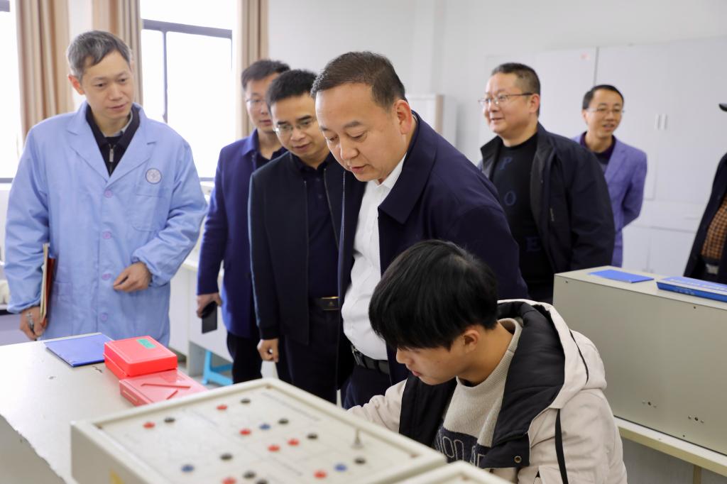 调研期间,曾广胜一行实地考察了理学院实验室,详细了解学院实验教学条件,并走进正在开展实验教学的应急技术与管理专业2023级课堂,与师生亲切交流,听取实验室建设的意见和建议。他还深入博士工作室,关心博士们的科研进展,与在场博士围绕国家级科研项目申报进行了深入交流,并提出了针对性的指导意见。